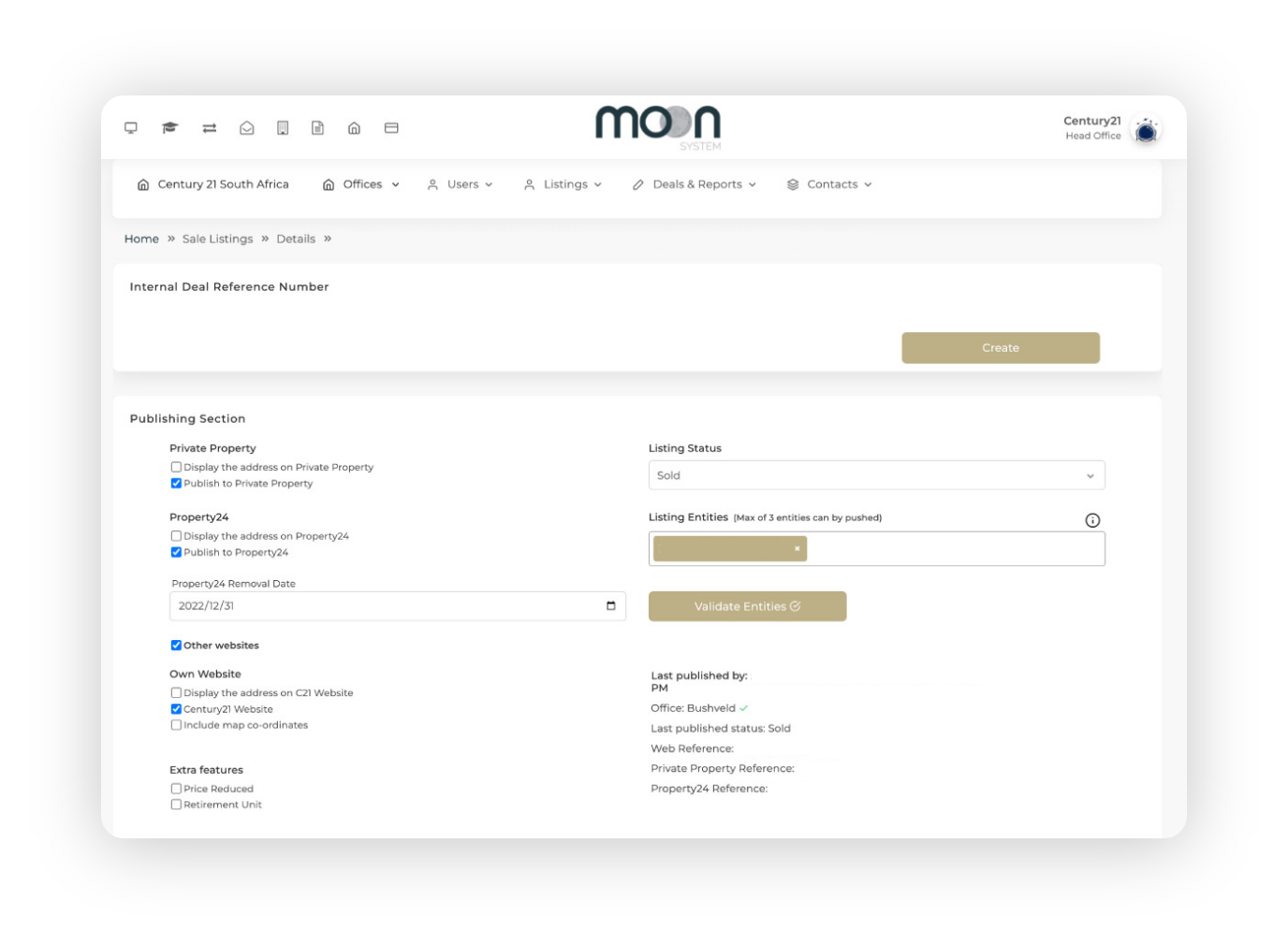 Publishing listings to major property listers, such as Property 24 and Private Property, is seamless and easy. MOON takes this a step further by publishing the listing on their own website as well as the international Global Referral Network.