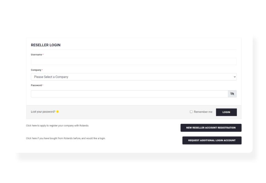 The portal made it easy for resellers to login or create an account, browse through their selection of products, and add items to their quote request.